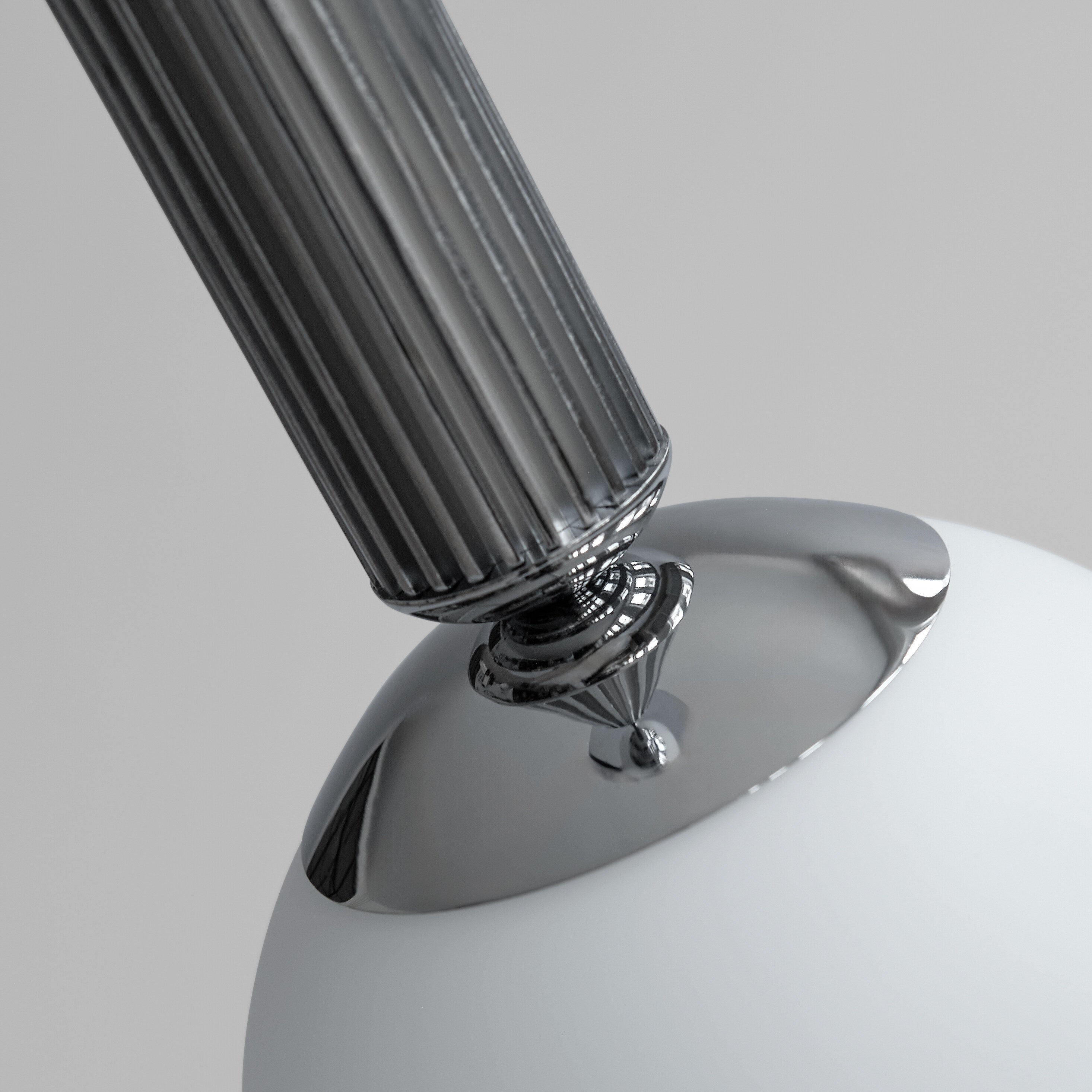 Always switch off and unplug the lamp before cleaning. Keep it away from excessive humidity or direct water contact. With simple, consistent care, the Chrome (Cr III) will preserve its liquid-metal brilliance, while the matte opal glass will maintain its soft, luminous glow ensuring the lamp remains refined and timeless for years to come.